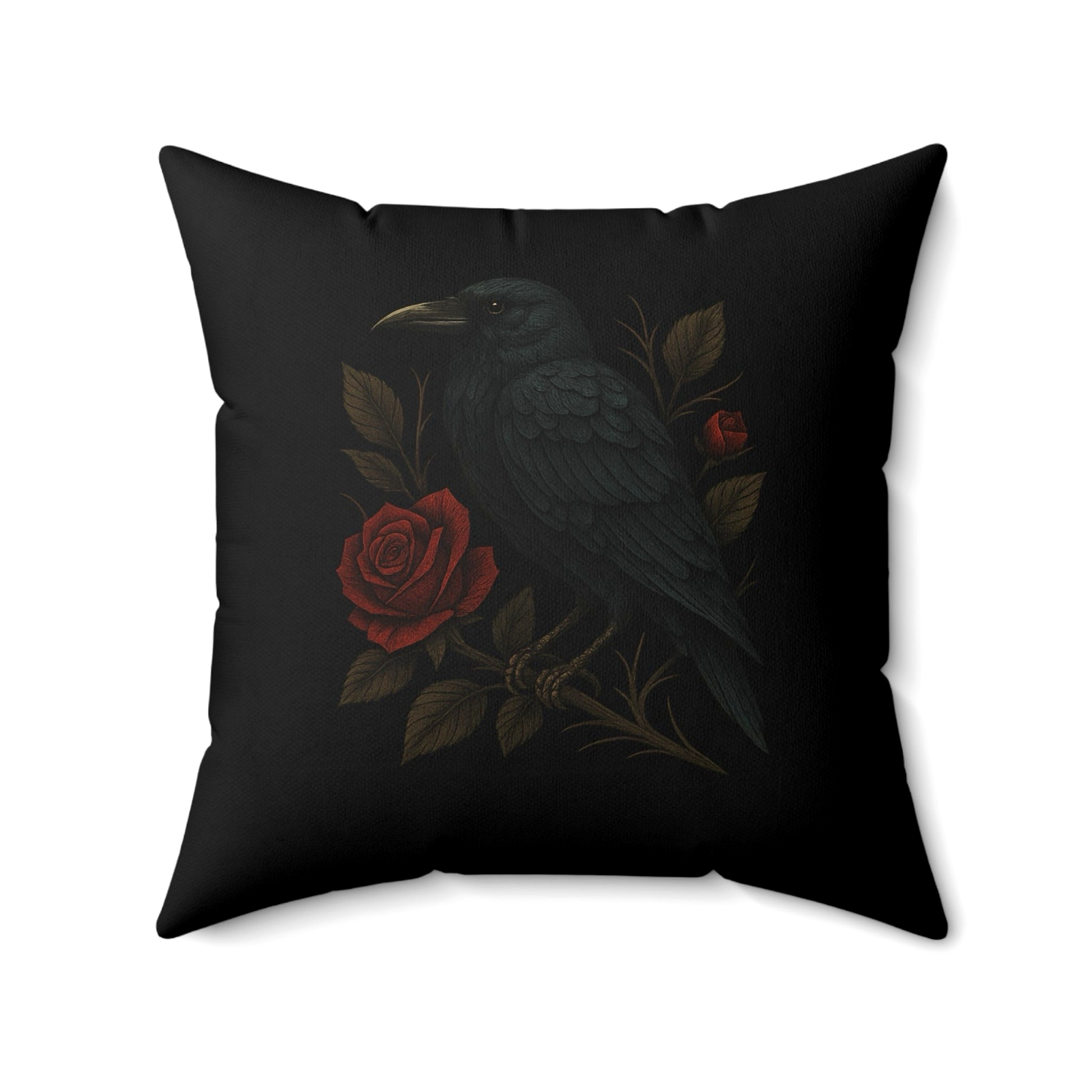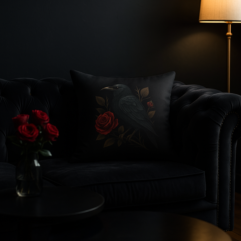 Un cuervo en la sombra, firme y vigilante: Nocturno del Cuervo no es solo una almohada, sino una vigilia en tela. Su silueta austera, estampada con negrita por ambos lados, parece evocar el silencio de la medianoche. Elaborada 100 % en poliéster hilado, su funda resiste las arrugas como la férrea voluntad de su musa, y el tirador metálico de la cremallera beige es un elegante guiño a la elegancia industrial.