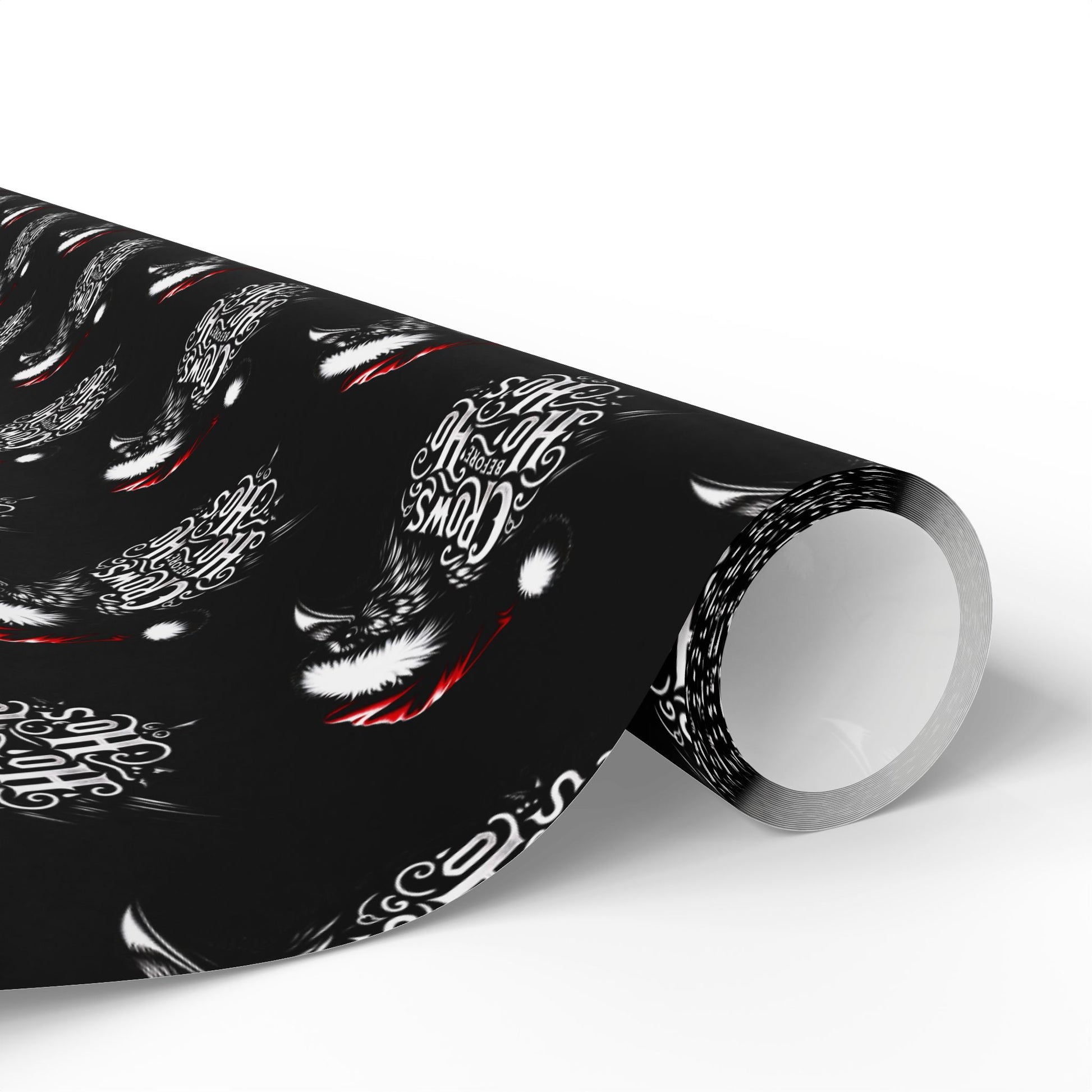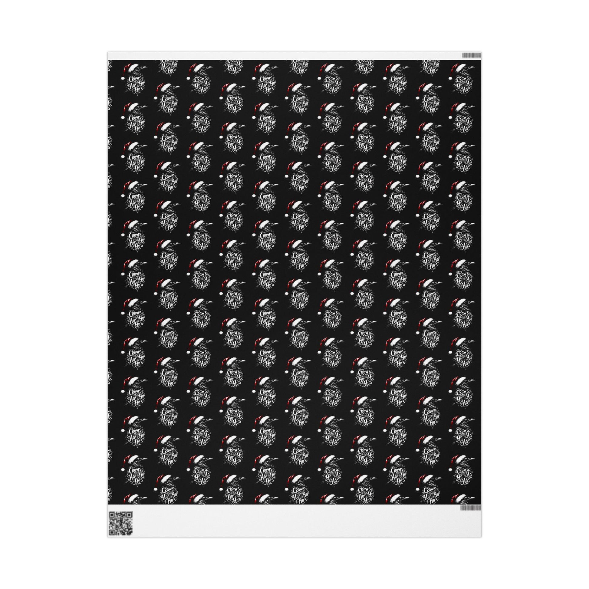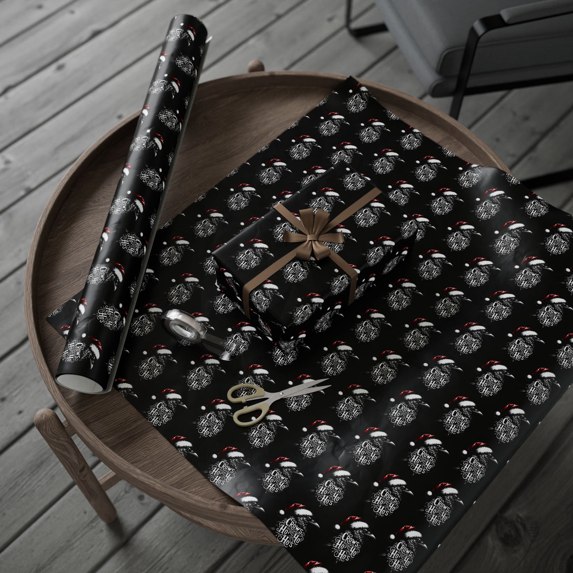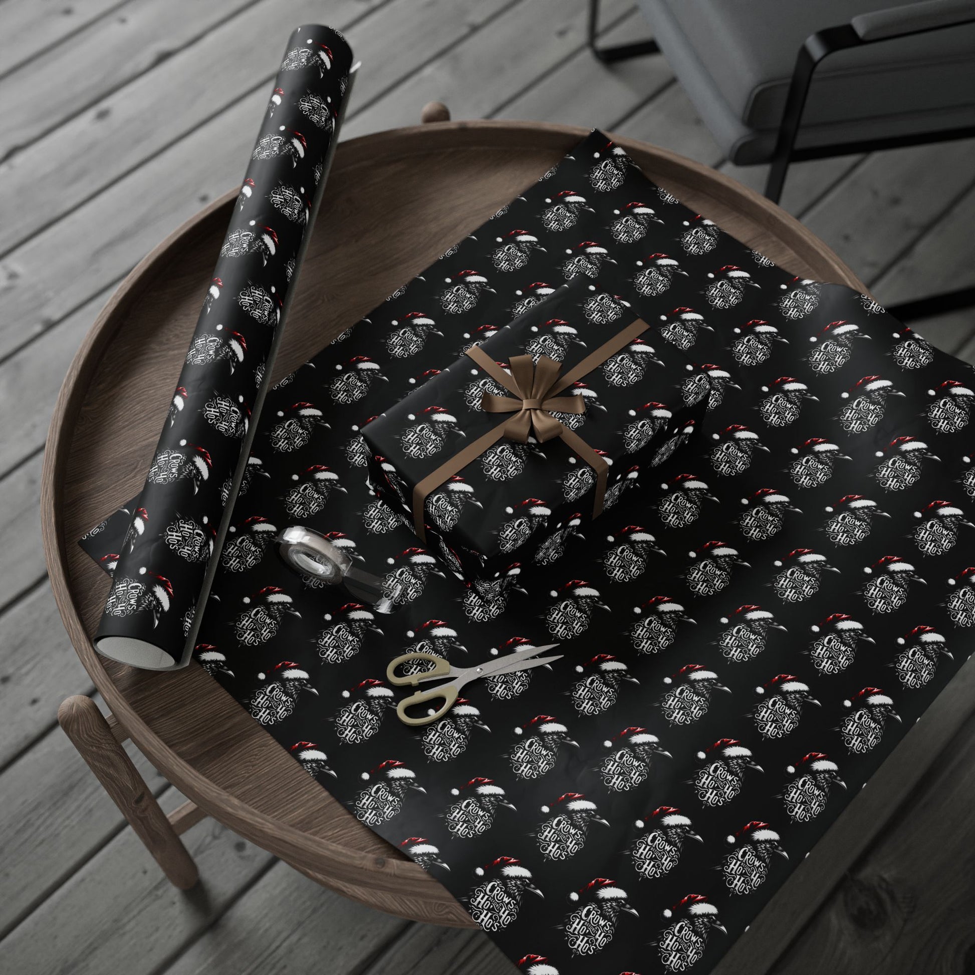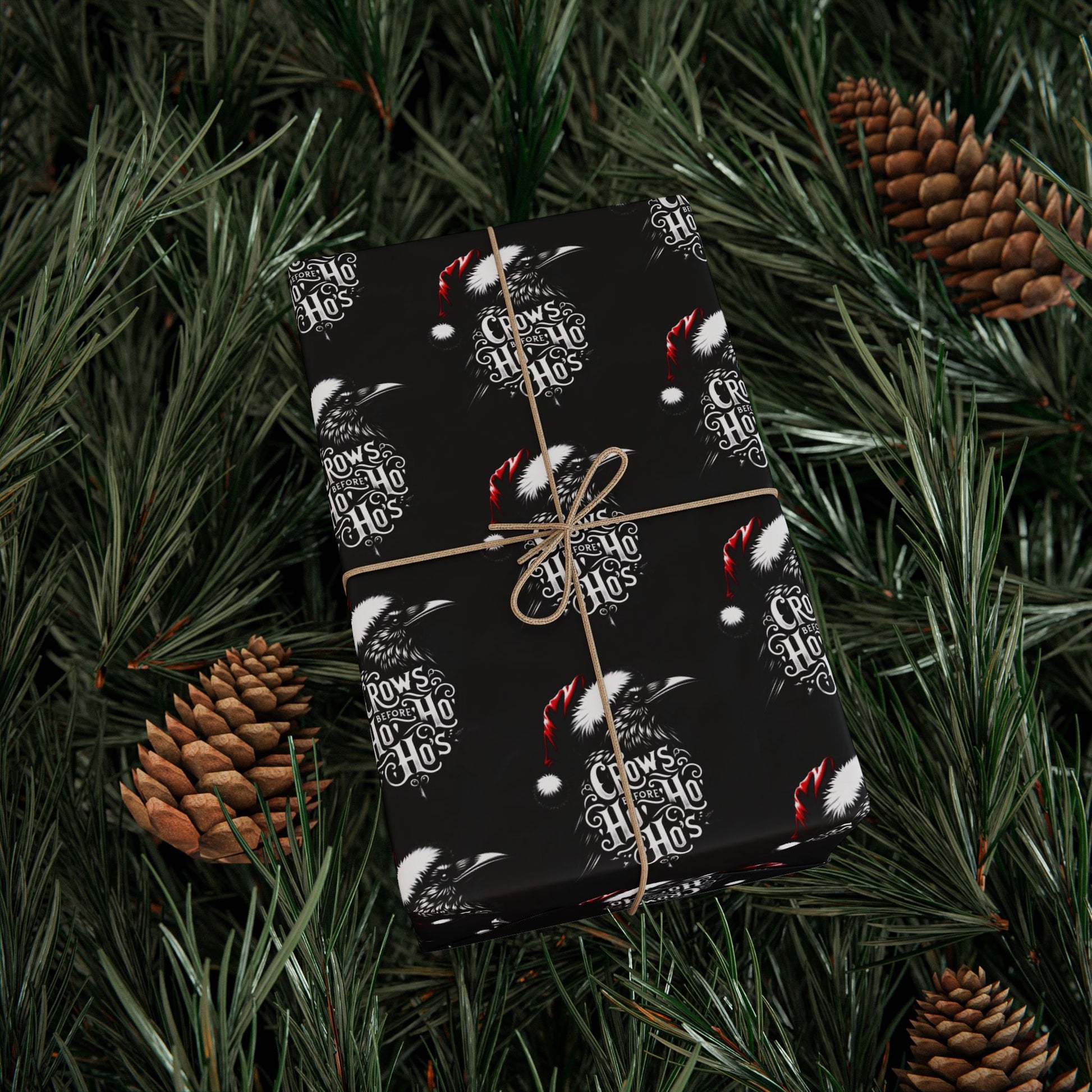 Black ravens wheel across a winter night, their silhouettes punctuated by playful "Hoe Hoe Hoe" lettering — a wrapping paper that brings a little mischievous holiday spirit to every package. The heavy 90 gsm paper takes ink richly, whether you choose a glossy sheen that makes the black feathers pop or a soft matte that feels calm and tactile. Use it to finish a cozy, bookish present for a friend who loves darkly whimsical holiday decor or to wrap a quirky secret Santa find for someone who collects raven art. It folds crisply around boxes, and the pattern reads well on both small parcels and long bouquets of gifts, adding a touch of gothic charm to mantel displays and under-tree stacks during winter gatherings.