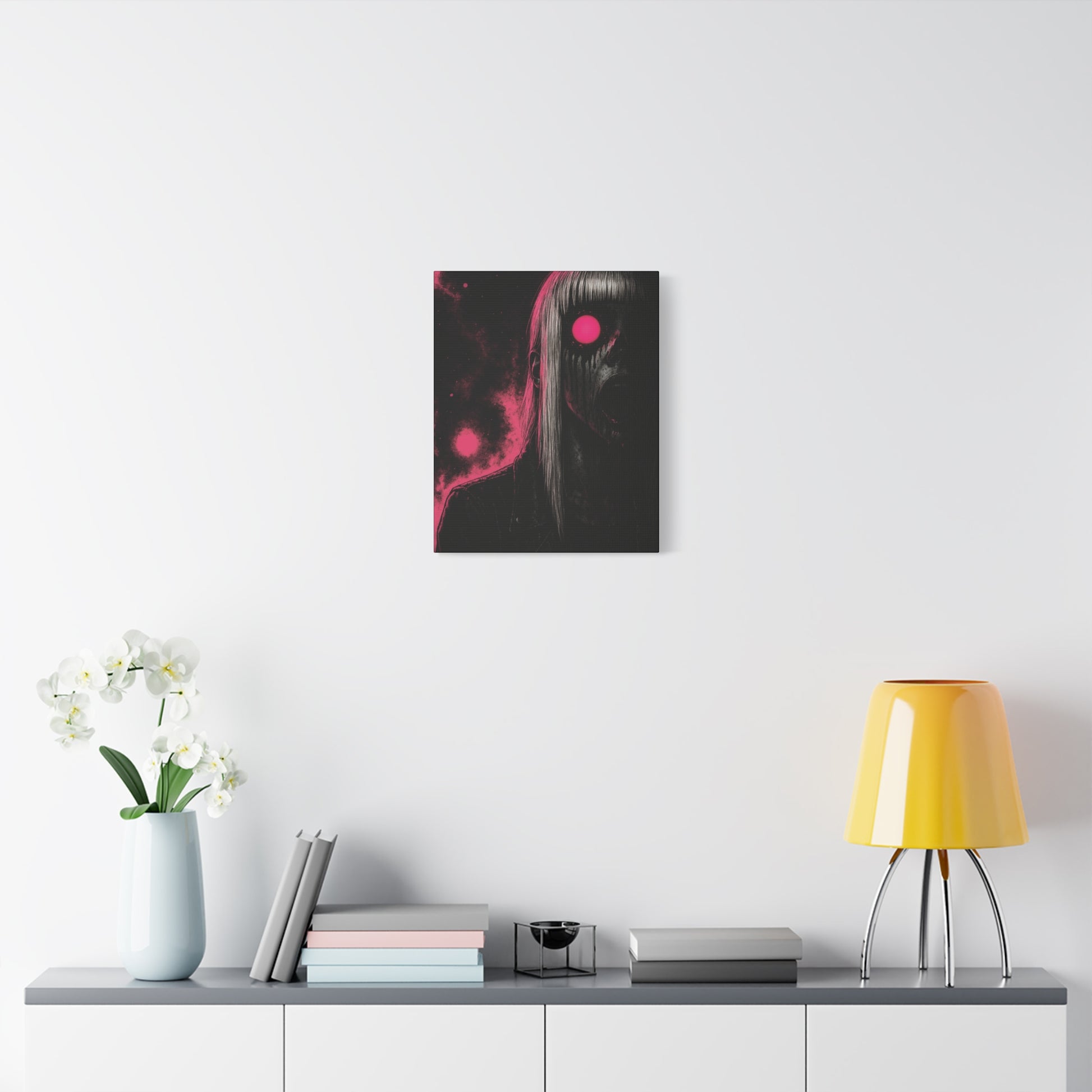 Neon Fright Glow brings bold, electric energy to your walls. This stretched canvas captures a striking neon-hued design that hums with midnight alleyway vibes and retro horror-movie flair. The matte surface keeps reflections low so the color pops without glare, while the slim 1.25" profile gives a modern, gallery-ready silhouette. Hang it above a console, in a dimmed reading nook, or part of a moody wall cluster to create an atmosphere that’s equal parts edgy and nostalgic. Printed with low-odor, UL-certified Greenguard Gold inks on a durable cotton-poly canvas, it’s built to hold vibrant detail and stay vivid over time. The pine inner frame is responsibly sourced, and thoughtful touches — like soft rubber dots and included hanging hardware — make installation simple and secure. If you’re drawn to neon textures, late-night film aesthetics, or a touch of playful fright, this canvas speaks that language without shouting.