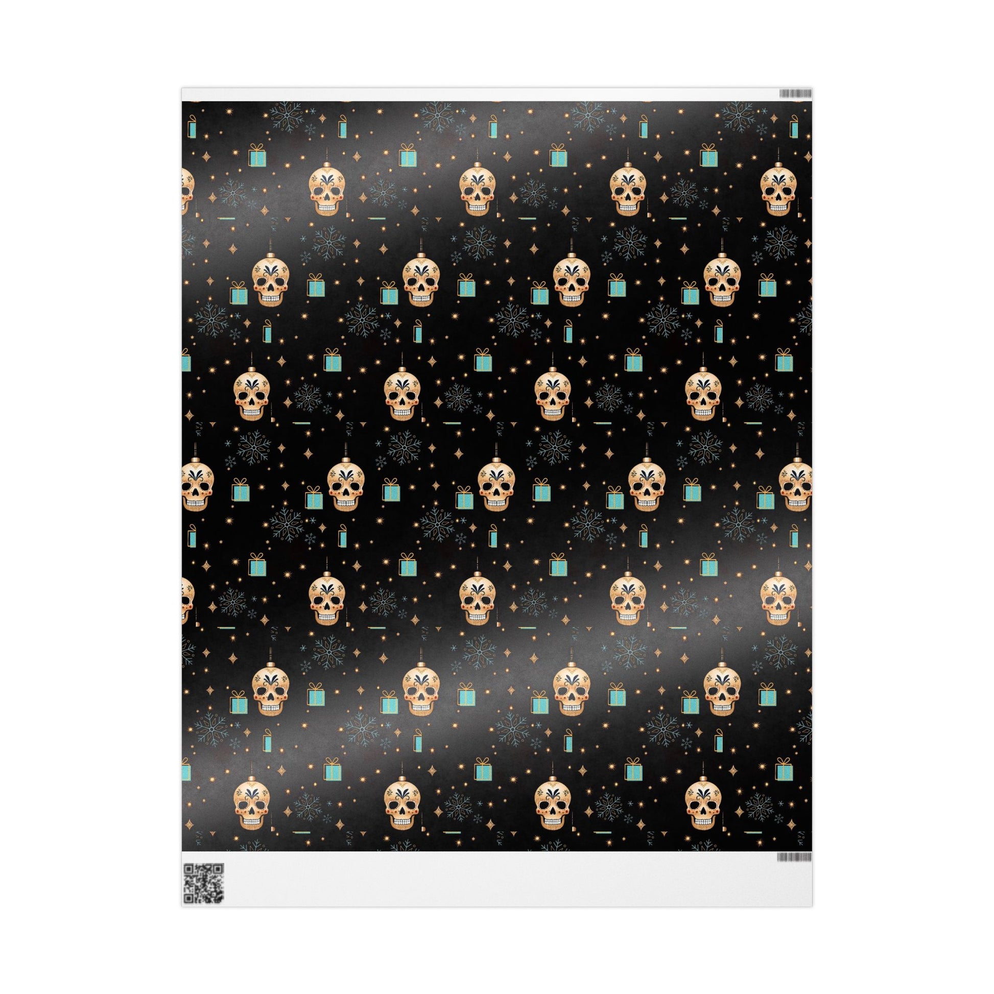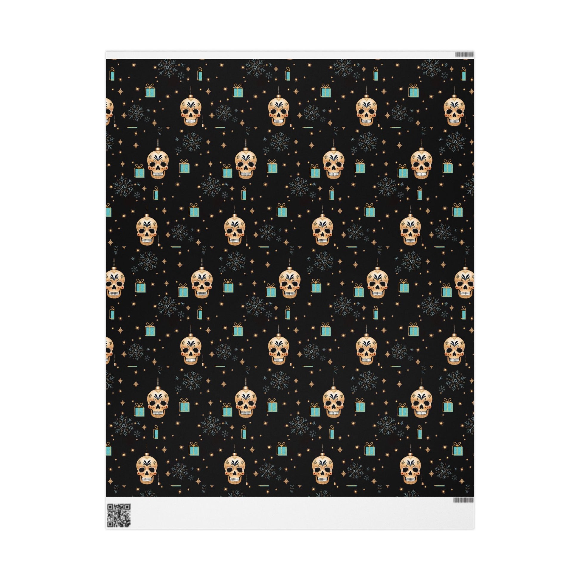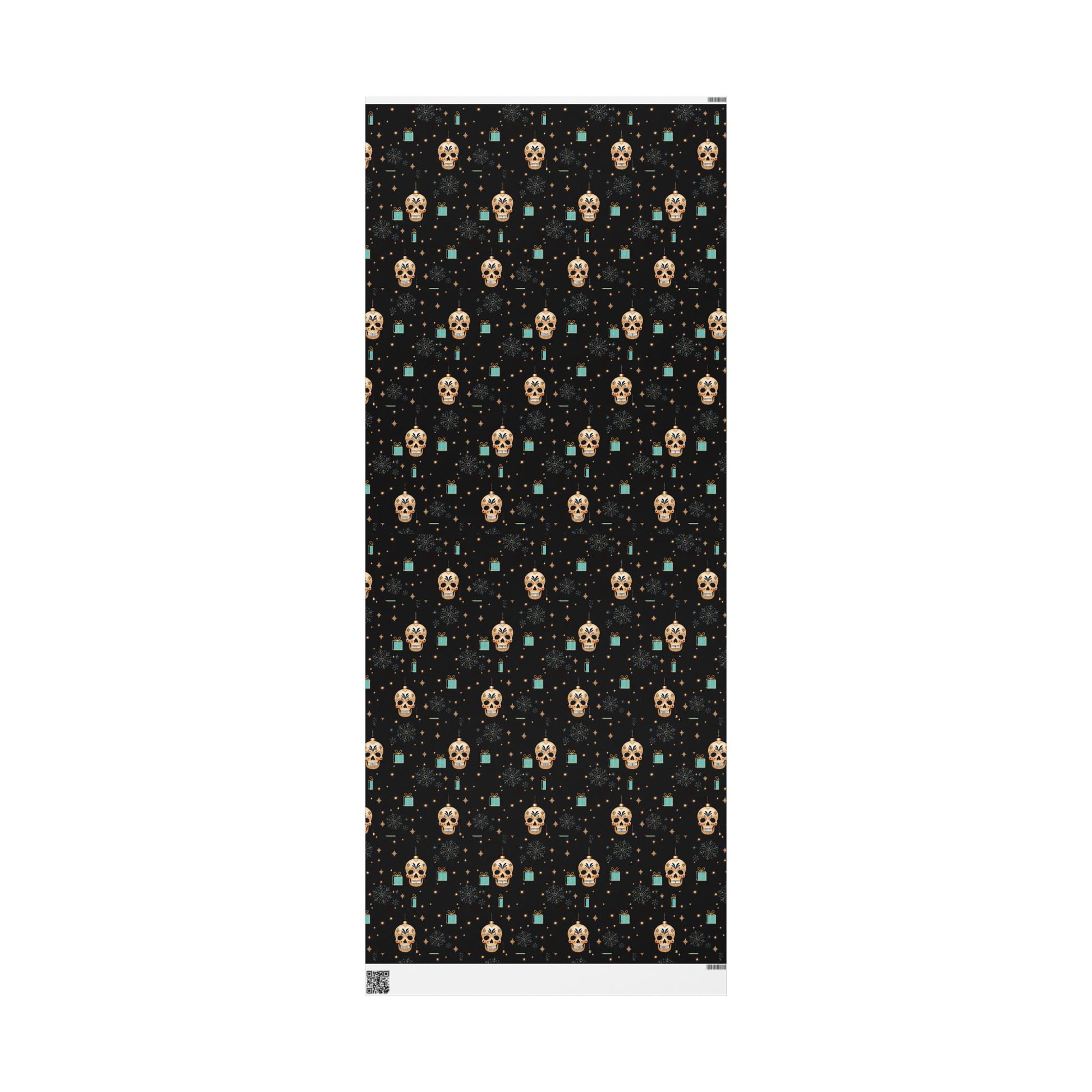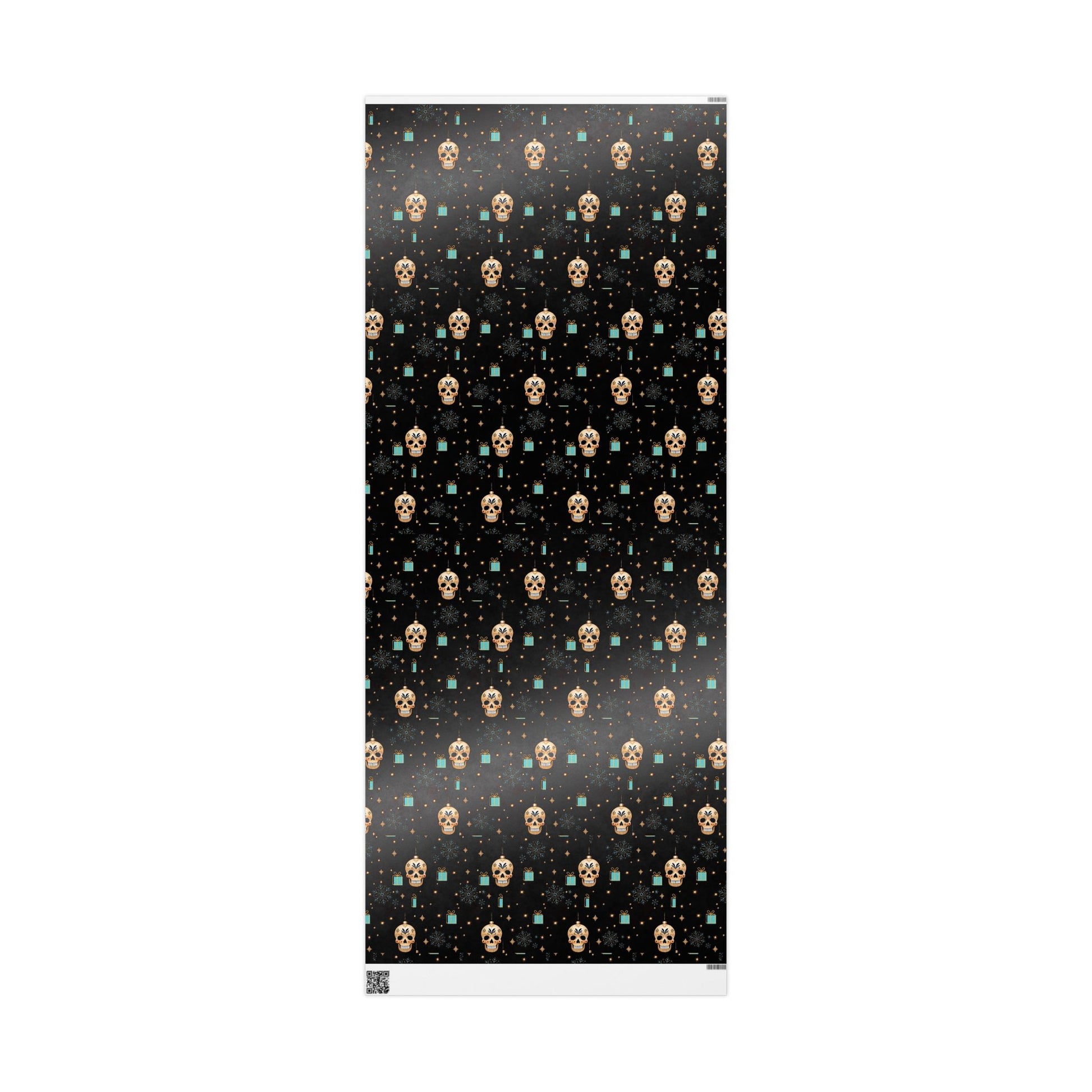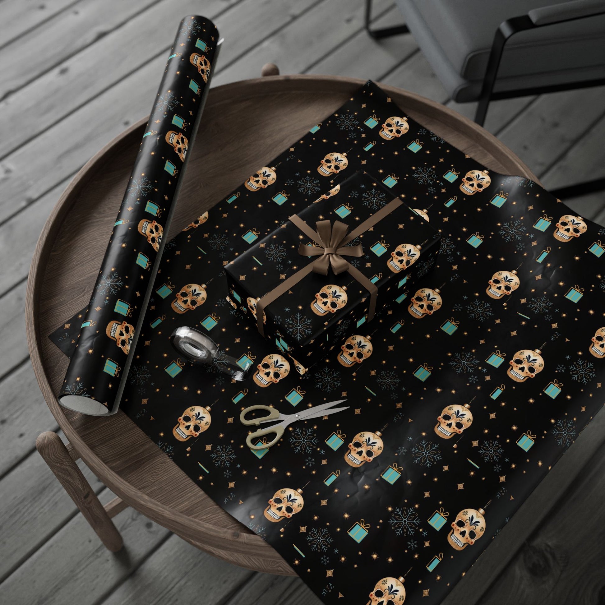 Imagine sliding a present from beneath dim lights: the skulls catch a glint, the teal boxes pop against the dark background, and the whole package reads as thoughtful and a touch rebellious. It complements eclectic holiday gatherings, seasonal swaps, and cozy nights when friends trade small treasures. Use it when you want wrapping that whispers personality and craft—not shout it.