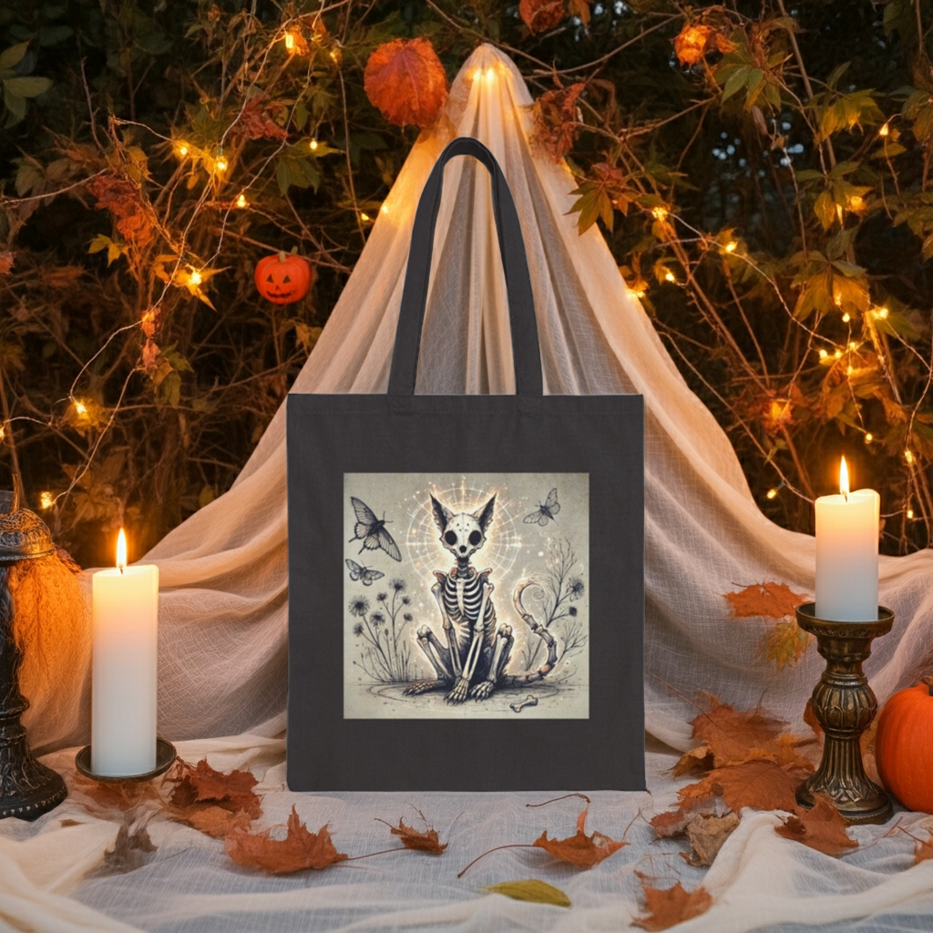 📋 Features: • Striking skeleton cat design • Durable canvas construction • Spacious interior for all your treasures • Strong straps for heavy-duty carrying • Perfect for shopping, shows, or daily adventures • Free shipping included